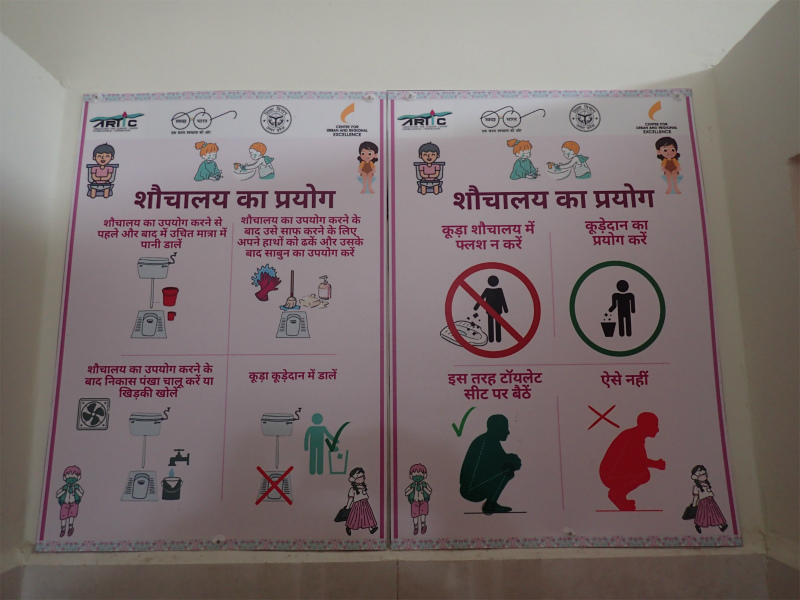児童生徒、教師、そして住民に対し、水と衛生に関する参加型ワークショップを開催。単に知識を教えるだけでなく、「自分たちの環境を自分たちで良くする」という意識を共有し学校や地域への愛校心・愛郷心と、衛生・自立意識の向上を図ります。英語とヒンズー語を用いて、何をしていかなければいけないのか、逆に何をしてはいけないのかということを伝えるための説明を作成。皆が認識し行動できるように見やすい場所に設置しています。