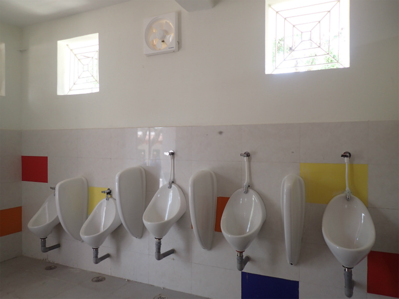 トイレにおいては、この人数に対して2棟、計6つしかない上に、故障していたり、水不足で使用できない場合があります。トイレの劣悪さと不足が登校意欲を阻喪させており、特に月経などが始まった成長期の女子生徒たちの欠席を助長しています。そのような背景から、児童生徒用トイレ、教職員トイレ、身障がい者用多目的トイレを増設。
